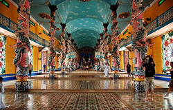 Tay Ninh, à 100 km au nord-ouest de Saigon est le siège de la secte caodaïste qui abrite le Grand Temple. Ce sanctuaire est un mélange architectural de cathédrale et de pagode (version Disney).